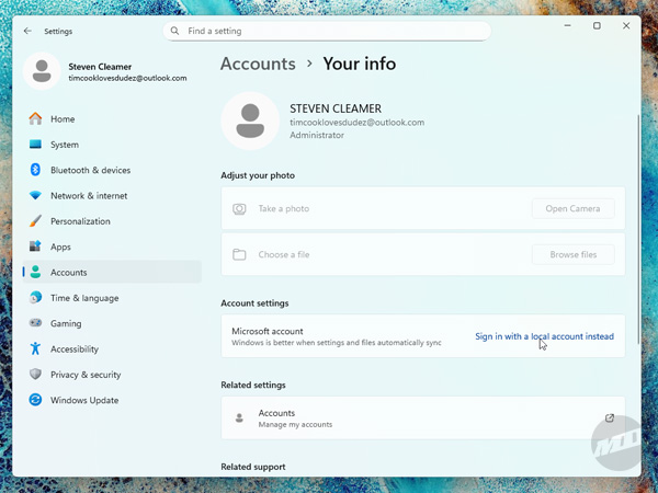 If Windows already tricked you into signing up for a Microsoft Account, you can easily switch back to a local one.