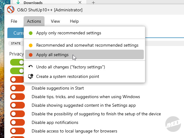 You're done here. ShutUp10++ will likely prompt you to restart when you close it.