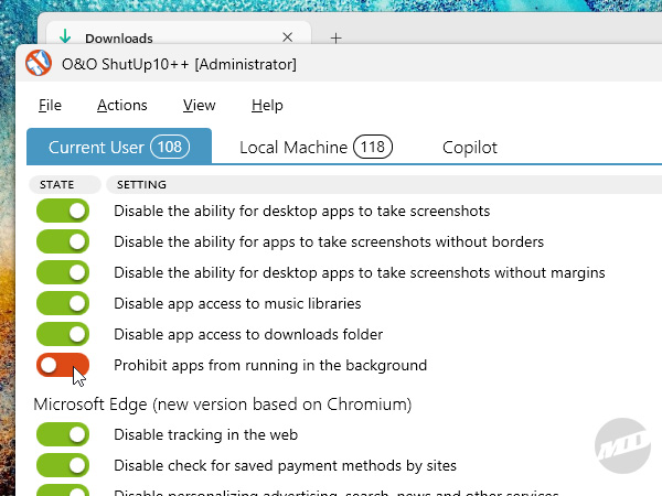 O&O Software offers another great utility called ShutUp10++ that allows you to disable Copilot, unwanted access to hardware and files, location sharing, data collection, transmission of weird habits you're into, and much more.